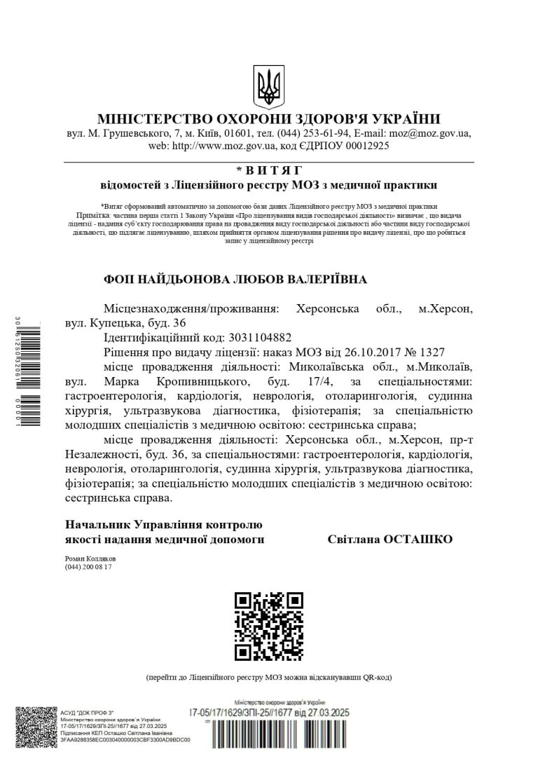 Приємно вражена турботою. Дякую Заболотній Ж.А., хірургу Гнатовському С.С. (золоті руки!) та УЗД-лікарю Кіхтенко О.В. — чуйні, професійні. Буду рекомендувати!